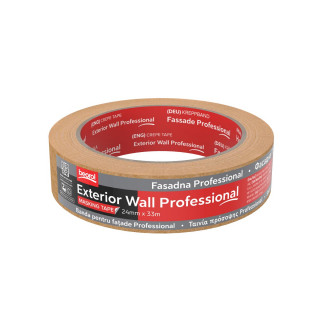 Krep traka Fasadna Professional 24mm x 33m je namjenjena za zaštitu spoljašnjih površina prilikom izvođenja fasadnih radova. Traku karakteriše lijepak od prirodnog kaučuka. Namjenjena je profesionalnim i poluprofesionalnim fasaderima. Nakon lijepljenja na površinu, pruža najbolje performanse do 72h i ostavlja površinu čistom nakon uklanjanja trake. Zahvaljujući odličnoj otpornosti na temperaturne i atmosferske uticaje, ova traka je najbolja za spoljašnju upotrebu. Pogodna je za lijepljenje na ravnim i neravnim površinama i prilikom odlepljivanja se ne kida niti ostavlja trag lijepka/trake na tretiranoj površini. Preporuka je da se koristi na površinama kao što su spoljni zidovi. Boja: Braon.